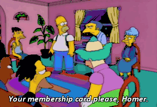 - Your membership card please, Homer. - Oh! I'll also need to remove your tattoo. I didn't get one yet. Rats.