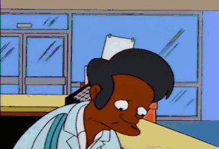 Oh! Fired after all these years of loyal service. I don't want to live anymore! Oh! Give me that wiener! No! I don't want to live, sir! Give me that wiener! No, Apu! It's not worth it! What do I do now?