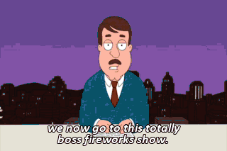 we now go to this totally boss fireworks show. (BAND PLAYING LIVELY MUSIC)