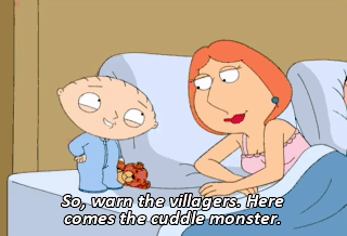 So, warn the villagers. Here comes the cuddle monster.