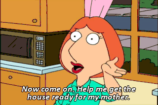 Now come on. Help me get the house ready for my mother. She's coming to visit for exactly one week. Bye, Mom.