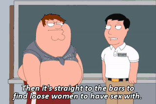 Then it's straight to the bars to find loose women to have sex with.