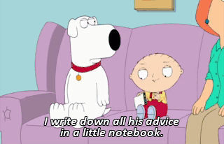 I write down all his advice in a little notebook. Yesterday's was, "I've never seen a pigeon die "from eating food on the ground, so what's the big whoop?" Peter, this skydiving thing has gotta stop.