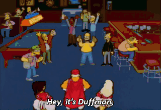 Hey, it's Duffman, the guy in a costume that creates awareness of Duff! Duffman wants to party down with the man who sent in...