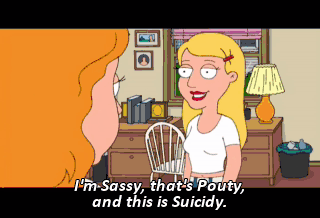 I'm Sassy, that's Pouty, and this is Suicidy. I got a bad feeling about Suicidy.