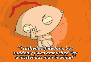 "I rushed to freedom, but suddenly I was ambushed "by a mysterious man in white!"
