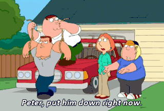 Peter, put him down right now. Beat it, Lois. Peter, stop it. Joe is your friend. Shut up, you nerd.