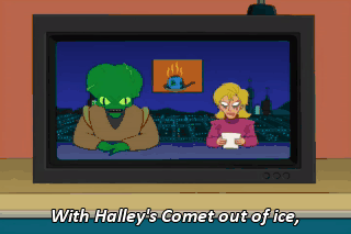 With Halley's Comet out of ice, Earth is experiencing the devastating effects... of sudden intense global warming. Morbo is pleased, but sticky.