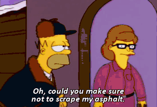 Oh, could you make sure not to scrape my asphalt. Kiss my asphalt. So I says, "Kiss my asphalt."