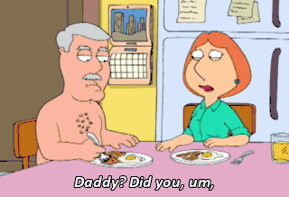Daddy? Did you, um, use the bathroom this morning? Yeah. And did you remember to clean up afterwards? Uh, no. I was hoping you would... - Oh, Daddy. No. No. - Okay. Brian? Oh, God! No. No. No, no, no. I'll do it.