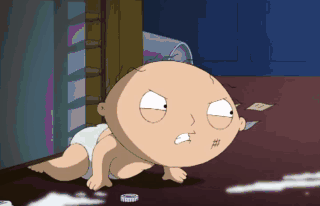(GRUNTS) Damn it! Now batting, Stewie Griffin! (BEEPING) Oh, crap.
