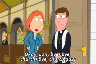 Okay, Lois, bye! Bye, church! Bye, church guy!