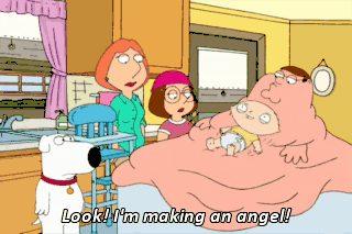 Look! I'm making an angel! See, Lois? Everything's gonna be fine. Now, smile while I write my name in you.