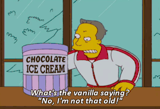 What's the vanilla saying? "No, I'm not that old!" Come on, talk! Let's hear you! (GRUNTS) Here's the scoop, your haagen days are over. I'm baskin' in your pain, as I'm robbin' you of life. (SLURPING)
