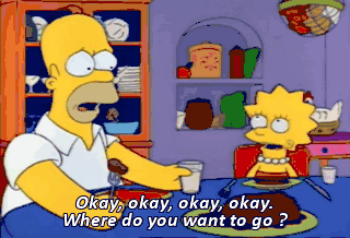 Okay, okay, okay, okay. Where do you want to go ? Anywhere but hamburgers, pizza or fried chicken. Fine ! We'll go to Mars !