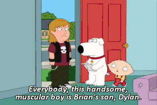 Everybody, this handsome, muscular boy is Brian's son, Dylan. Dylan is gonna be staying with us for a while.