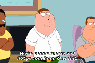 We're gonna sneeze and not put our hand over shit. And there ain't nothing you can do to stop us!