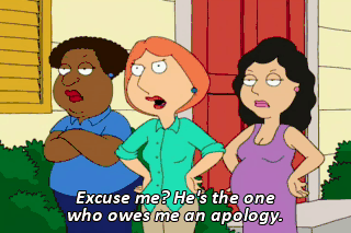 Excuse me? He's the one who owes me an apology. He was watching me go to the bathroom.