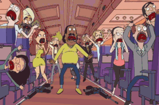 Oh, no, Morty. His subconscious is panicking. Run! Relax, Marty, Look! Mrs. Pancakes has a parachute. Come on!