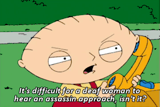 It's difficult for a deaf woman to hear an assassin approach, isn't it?