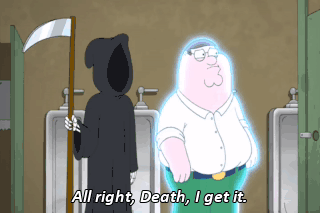All right, Death, I get it. I wish I'd never touched a drop of alcohol in my life.
