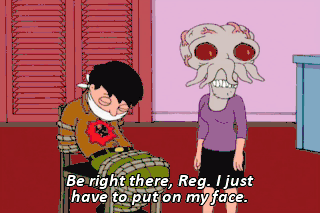 Be right there, Reg. I just have to put on my face.