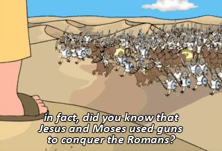 in fact, did you know that Jesus and Moses used guns to conquer the Romans? So, remember, guns don't kill people, dangerous minorities do.