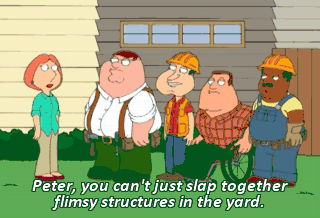Peter, you can't just slap together flimsy structures in the yard. Why not? Herbert did it. Y-M-C-A It's fun to stay at the Y-M-C-A (SIGHS) All right, Peter, this is a tough one.