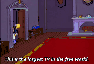 This is the largest TV in the free world. ¡Ay, un gato malodoro!