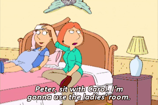 Peter, sit with Carol. I'm gonna use the ladies' room.