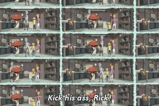 - Kick his ass, Rick! - Die, motherfucker. Ow! I'm defeated.