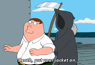 Death, put your jacket on, or you'll get frostbite! I don't have skin! THat's beCause you didn't eat your beans!