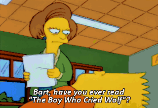 Bart, have you ever read "The Boy Who Cried Wolf"? I'm halfway through it! I swear!