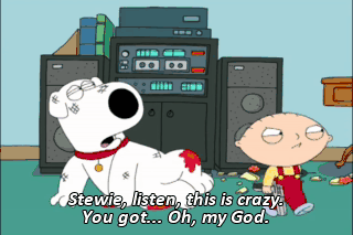 Stewie, listen, this is crazy. You got... Oh, my God. (SCREAMING)
