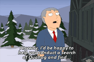 Anyway, I'd be happy to help you conduct a search of Quahog and find...