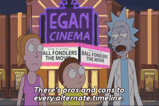 There's pros and cons to every alternate timeline. Fun facts about this one -- It's got giant, telepathic spiders, 119/11s, and the best ice cream in the multiverse!