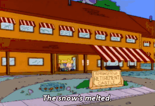 The snow's melted. We can go outside again. I don't like the looks of those teenagers.