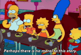 Perhaps there is no moral to this story. Exactly ! It's just a bunch of stuff that happened.