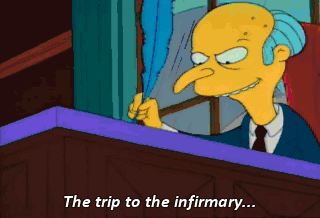 The trip to the infirmary... with most unexpected results. Oops. Twenty-eight minutes till Burns comes in. Time for Operation Mail Take.
