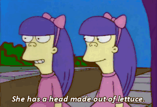 She has a head made out of lettuce. I can't believe I used to go out with you. Are you gonna marry a carrot, Lisa?