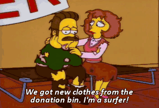We got new clothes from the donation bin. I'm a surfer! Look, Daddy. Todd is stupid, and I'm with him. And now Mommy's stupid! Looking good, Rod. Looking good.
