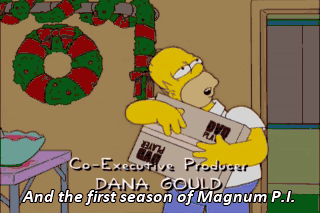 And the first season of Magnum P.I. with commentary by John Hillerman. Apparently working in Hawaii was a pleasure. Oh, Carl, you remembered I like TV. (KISSING)