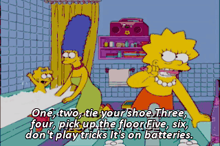 One, two, tie your shoe Three, four, pick up the floor Five, six, don't play tricks It's on batteries.