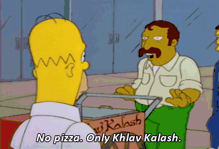 No pizza. Only Khlav Kalash. Oh, shoot. All right, all right. Give me one bowl. No bowl. Stick. Stick. Oh, geez! That's just awful!