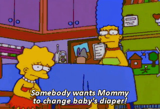 Somebody wants Mommy to change baby's diaper!