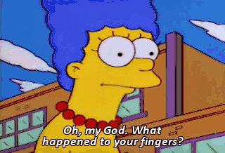 Oh, my God. What happened to your fingers? Boating accident. I believe it was a "boaking" accident. I have to go now.