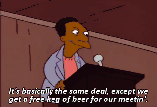 It's basically the same deal, except we get a free keg of beer for our meetin'. Yea!