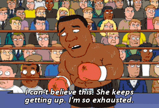 I can't believe this. She keeps getting up. I'm so exhausted.