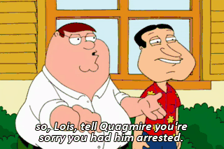 so, Lois, tell Quagmire you're sorry you had him arrested.
