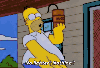 No lighter? Nothing? Oh! Wait. I got it. D'oh!